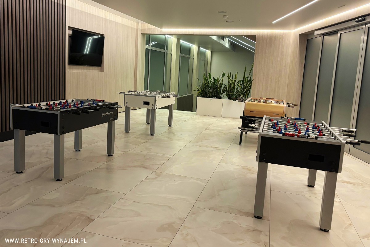 Nasze wysokiej jakości piłkarzyki oferujemy w ramach wynajmu na imprezy i eventy firmowe, nie tylko jako atrakcje piłkarskie. Świetnie sprawdzą się podczas wszelkiego rodzaju spotkań biznesowych oraz festynów, zarówno w roli uzupełnienia programu, jak i jego głównego punktu. Piłkarzyki to uniwersalna gra na wynajem, która przekracza bariery wieku, płci i poziomu umiejętności. Ich prosty, a jednocześnie angażujący charakter sprawia, że ​​każdy może szybko zrozumieć zasady i wziąć udział w zabawie. Tworzą atmosferę sprzyjającą budowaniu zespołu i interakcjom społecznym. Dzięki kompaktowym rozmiarom stół do gry w piłkarzyki idealnie sprawdzi się w ramach wynajmu na targi, nawet na stoiskach o ograniczonej powierzchni. Nasze atrakcje piłkarskie na imprezy możemy spersonalizować i nanieść na nie logo firmowe, aby jeszcze bardziej zwiększyć skuteczność działań promocyjnych.